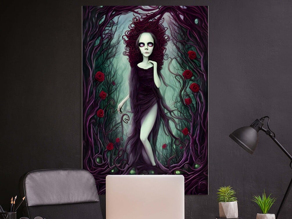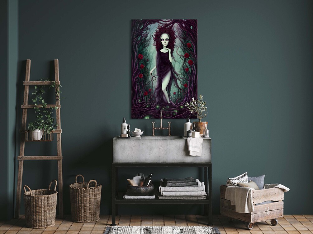 The Dark Old Witch - Unusual Vintage Photo of Gothic Floral Witch Face Wall Art - Halloween Art - Creepy Wall Art