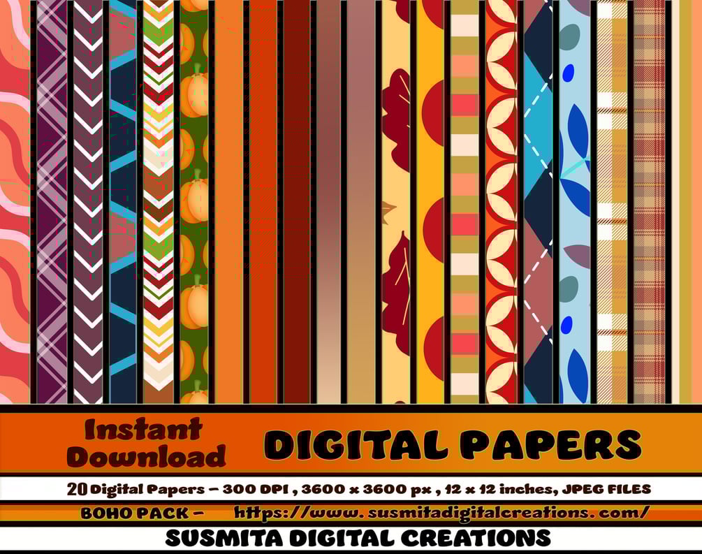 Autumn Digital Paper Pack, Scrapbook Paper, Seamless Pattern, Printable Paper