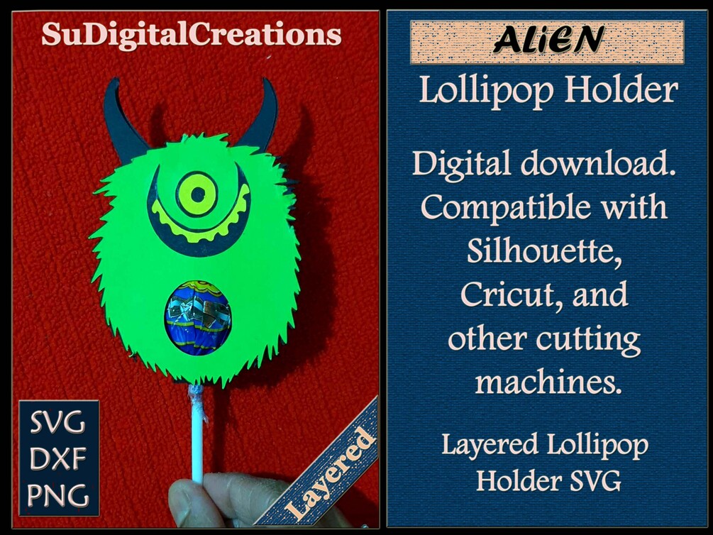 Alien Lollipop Holder - Sucker Holder Digital Design | SVG / DXF / PNG - Layered Svg Cut File